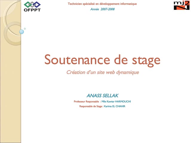 Voici un modèle de diaporama pour la soutenance orale du projet. Ce support a été réalisé par UTIA Teragi et VAKI Hanahei, élèves de 1ère STL, qui ont . Exemple de plan de. Un exemple de plan de soutenance de stage. Isabelle Dautresme. Soyez précis et concret pendant votre soutenance.